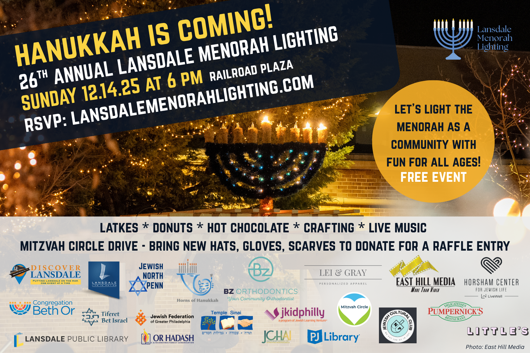 All are invited to join in the Annual Hanukkah Menorah Lighting at Railroad Plaza on December 14th at 6pm. This celebration is for all ages and will include a performance by the Horns of Hanukkah, doughnuts and hot chocolate, crafts, and more. This event is organized by community members and we are so honored to be the official apparel sponsor!